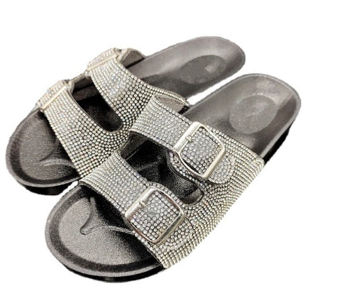 Classic Designer New Retro Ethnic Style Gold Buckle Spot Drill Decorative Hollow Open Toe Women Slippers Flat za woman 2021