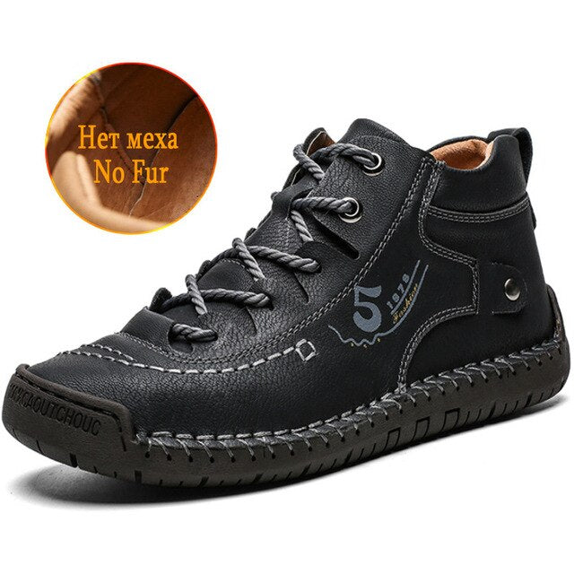Classic Winter Men's Boots Breathable Men Ankle Boots Thick Plush Warm Snow Boots Leather Autumn Outdoor Man Motorcycle Boots
