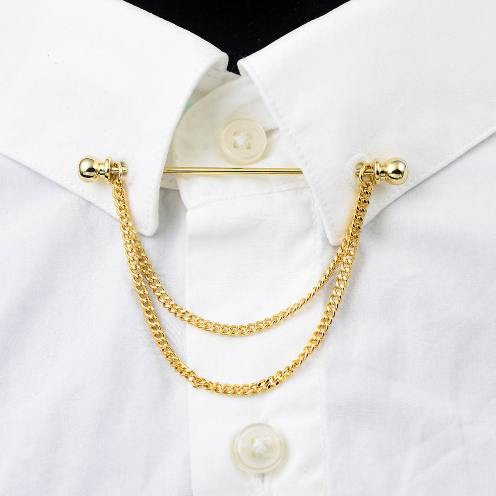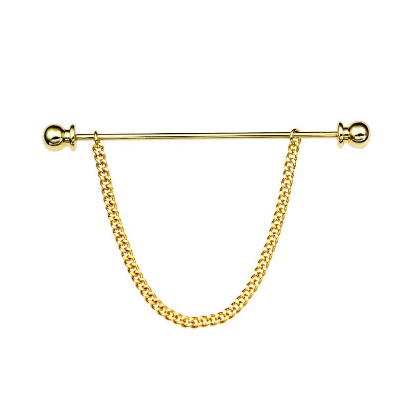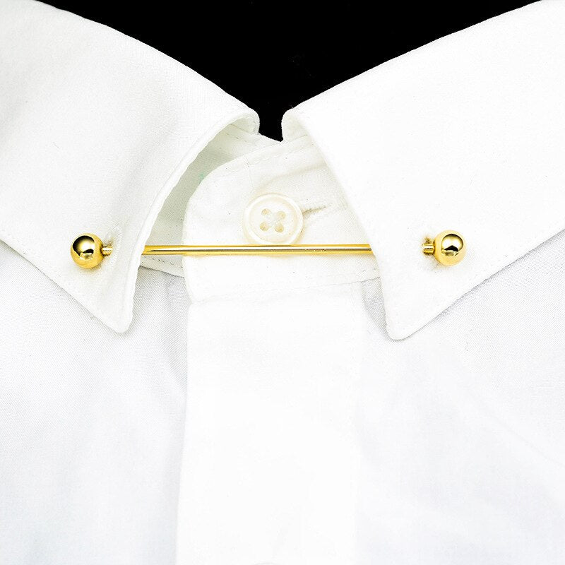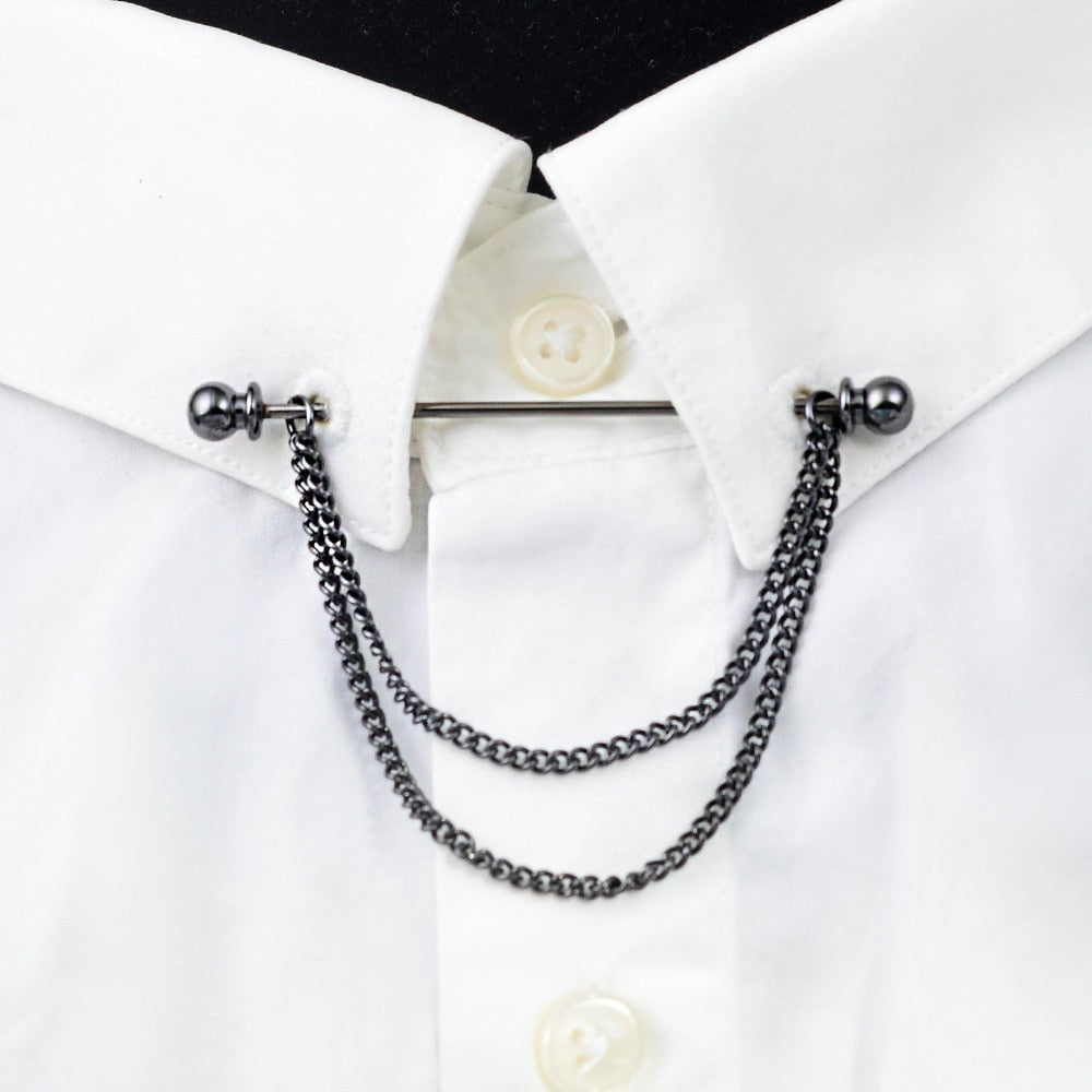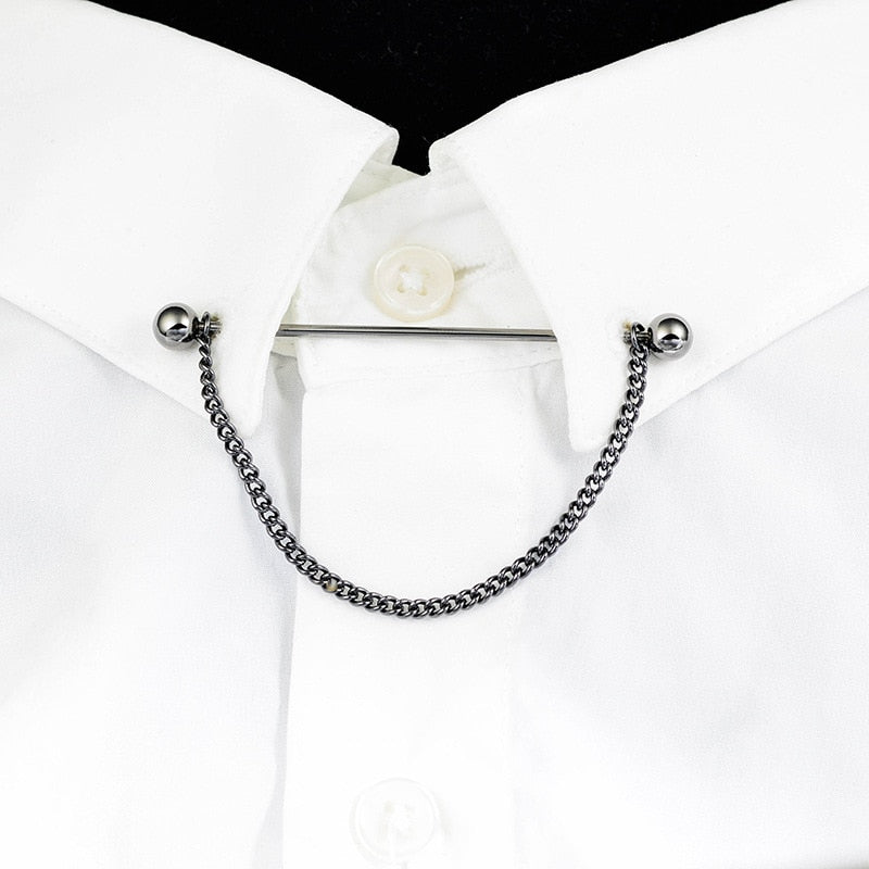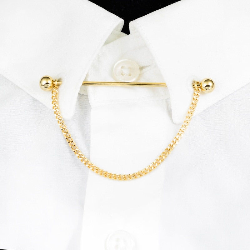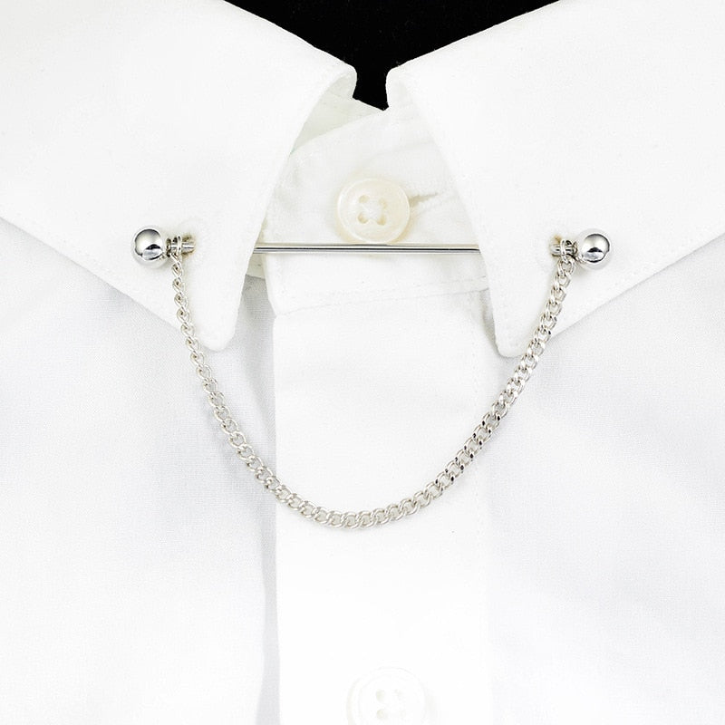 Collar Needle Round Ball One-word Metal Chain Fringed Men's Brooch French Shirt Neck Corner Buckle High Quality Copper Gifts