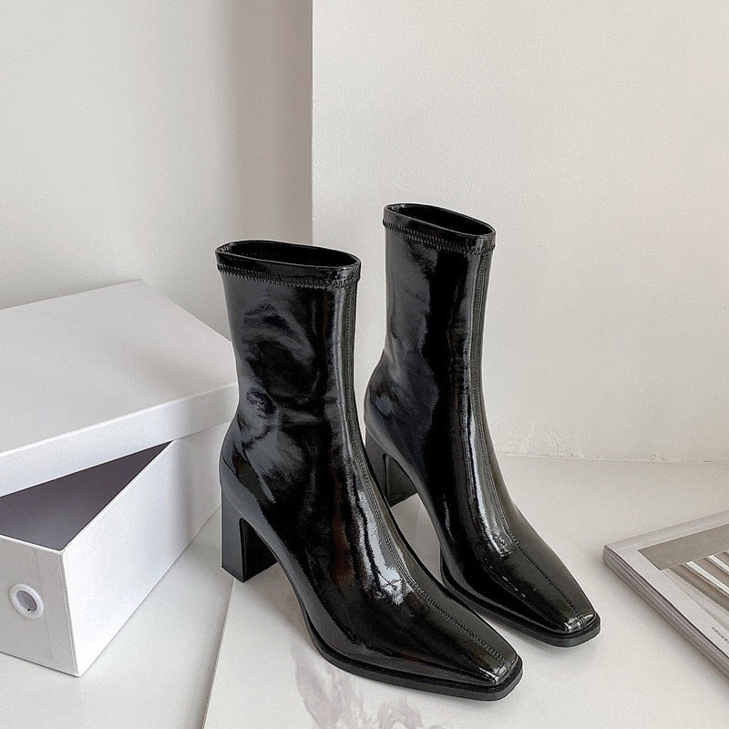 Fashion Black Sexy Ankle Boots Women High Heels Shoes Ladies Thigh High Boots Spring Leather Long Boots Female Shoe Botas Mujer