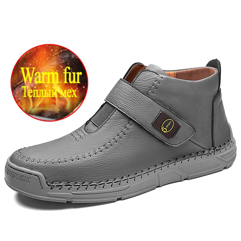 Fashion Men's Winter Boots Handmade Men's Ankle Boots Plush Warm Men's Snow Boots Outdoor Cold Protection Winter Men's Boots