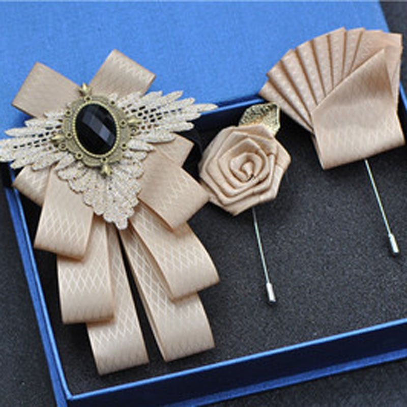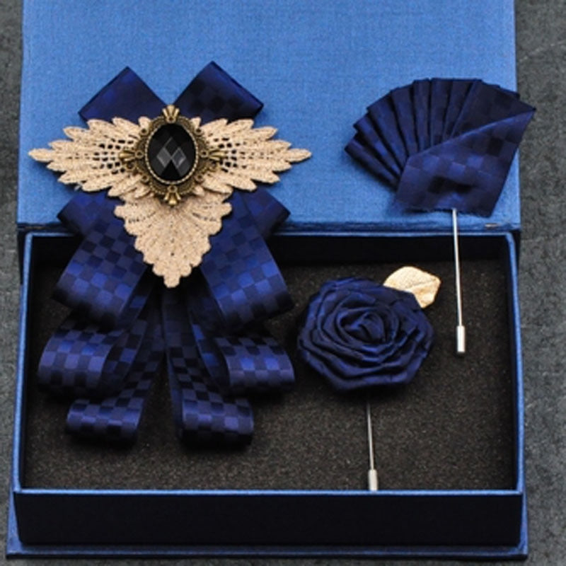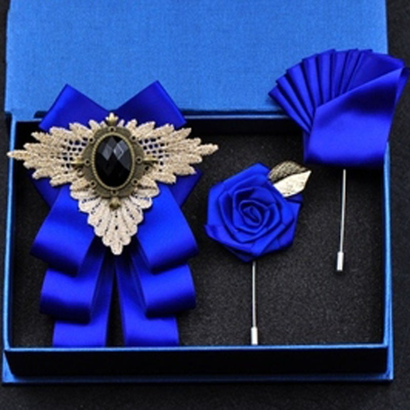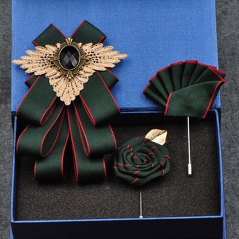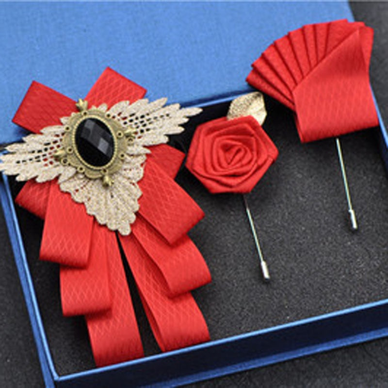 Fashion New Casual Multilayer Bowtie Diamond Brooch Rhinestone Red Bow Tie Brooch Set Wedding Groom Groomsmen Pocket Square Men