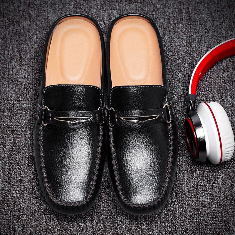 Fashion Quality Men Leather Casual Shoes Large Size Slip-on Male Mules Outside Light Comfort Half Slippers Handmade Breathable
