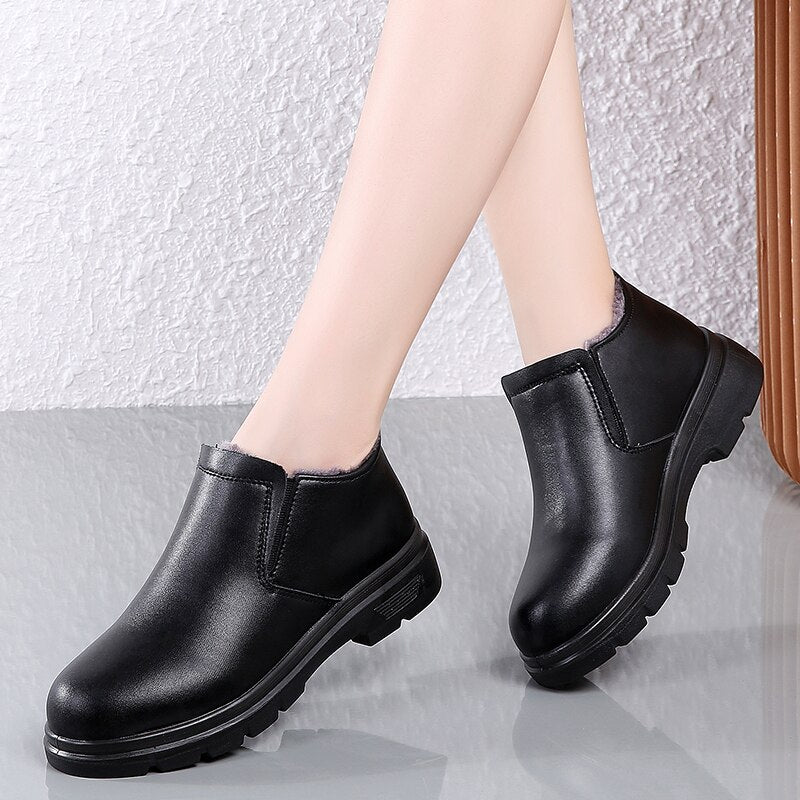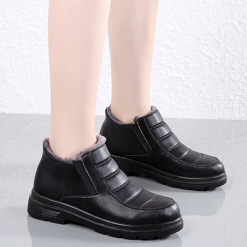 Fashion Quality Women's Winter Ankle Boots Outdoor Anti-skid Female Plush Shoes Black All-match Casual Snow Boots Warm Lined