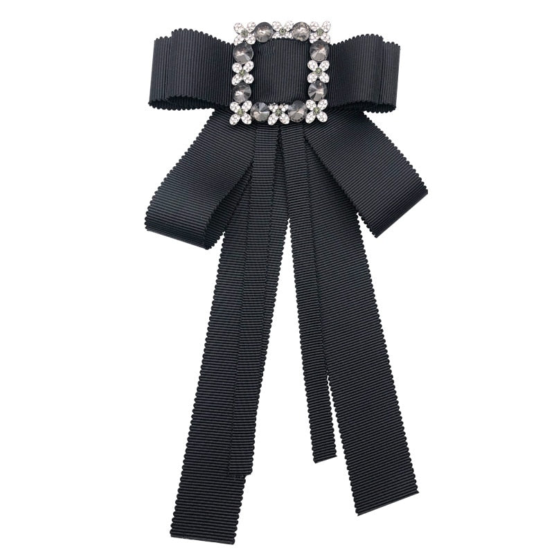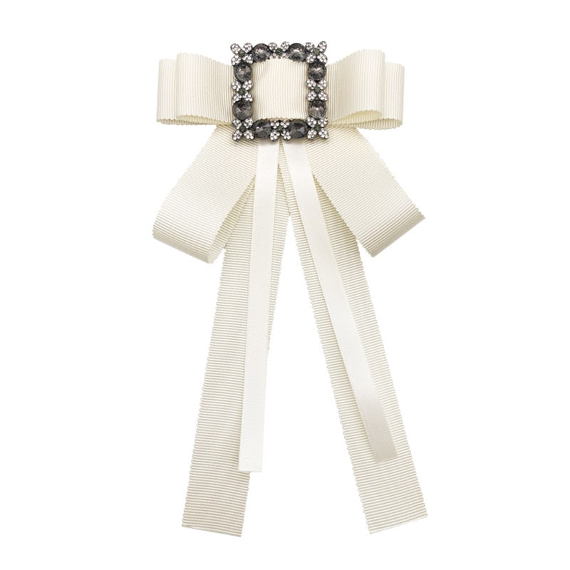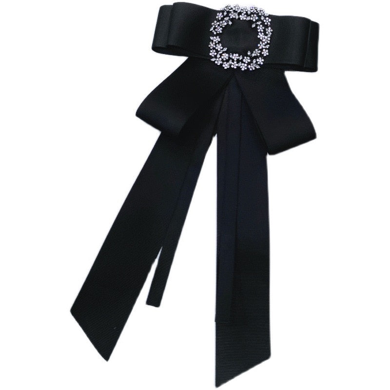 Fashion Ribbon Bow Tie High-end Women's Korean Style Plum Blossom Rhinestone Brooch Shirt Collar Flower Accessories