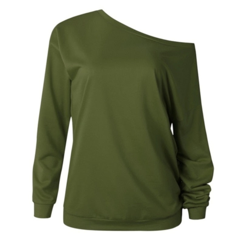 Fashion Style One Shouder Casual Soft Long Sleeve Shirt Women Cotton Tops Off The Shoulder Blouse Plus Size Full Solid