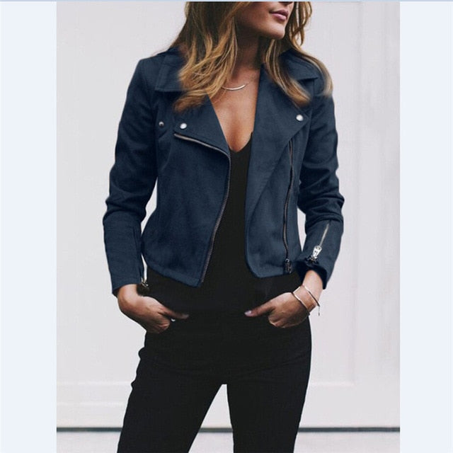 Fashion Women's Zipper Tunic Army Jacket Coats Casual Ladies Autumn Leather Jackets Zip Up Biker Coats Flight Tops Clothes New