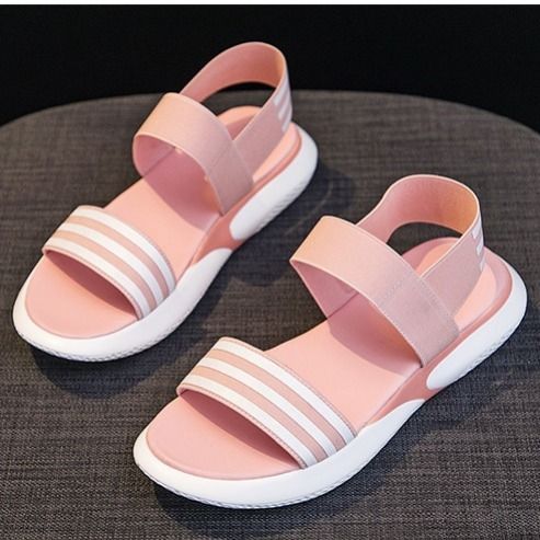 Fashionable breathable sandals pink elastic belt thick bottom sponge cake women's shoes 2021 new fish mouth flat shoes 35-40