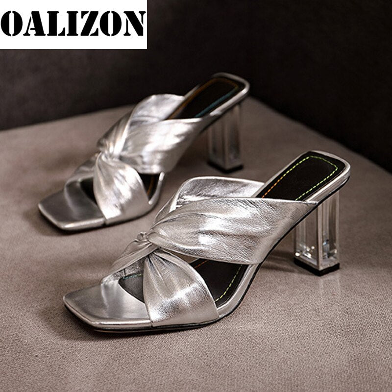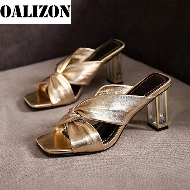 Female Summer New Fashion Open Toe Women Sandals High Chunky Heels Pumps Slippers Shoes Woman Cross Mules Slides Slippers Shoes