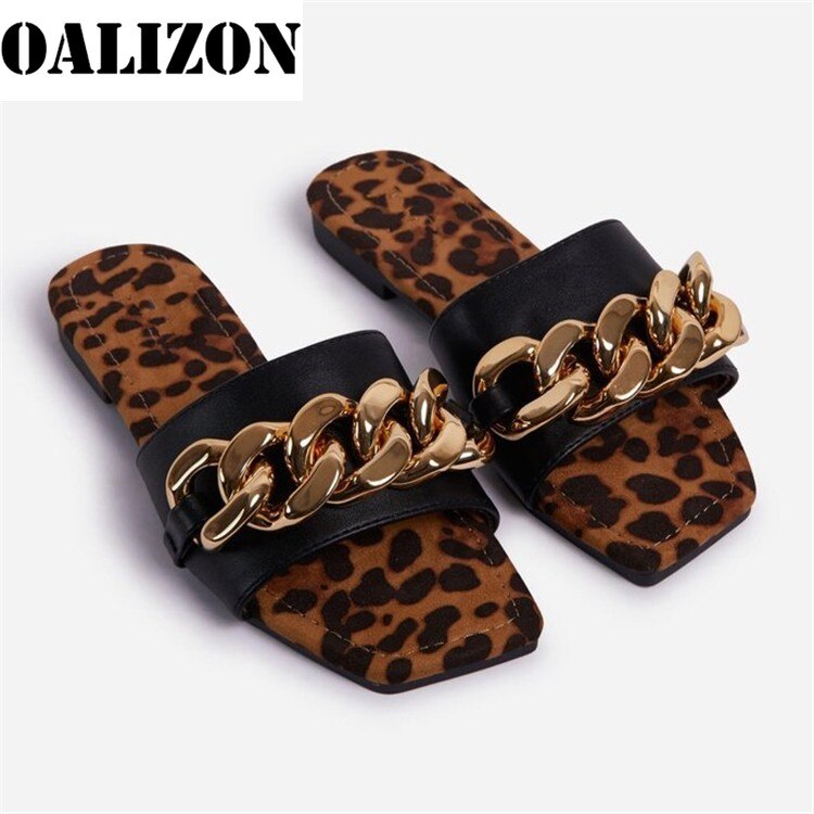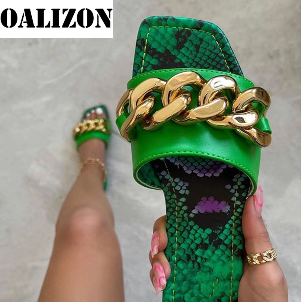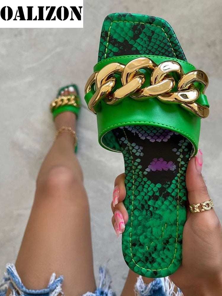Female Women Summer New 2021 Fashion Chains Flat Open Toe Sandal Slippers Shoes Sexy Woman Lady Flip Flops Slides Slippers Shoes