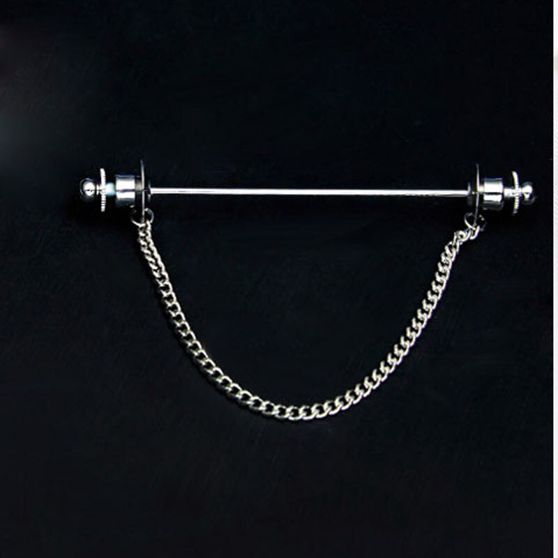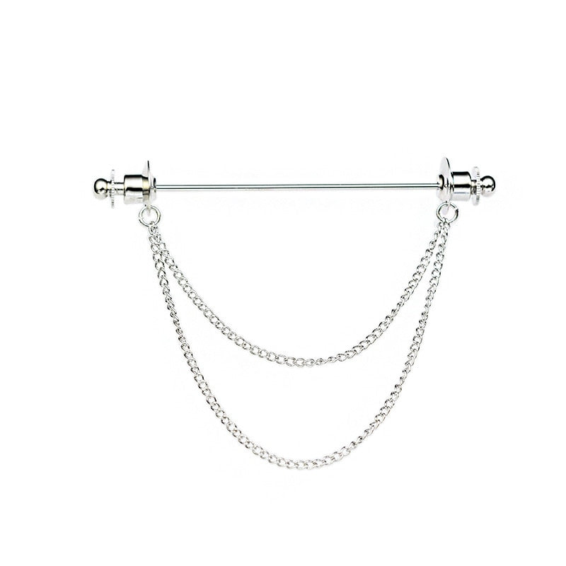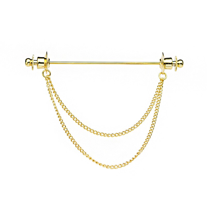 French Shirt Collar Needle Brooch Prevent Exposure Unisex Business Wedding Ceremony Copper Fringed Chain Classic High Quality