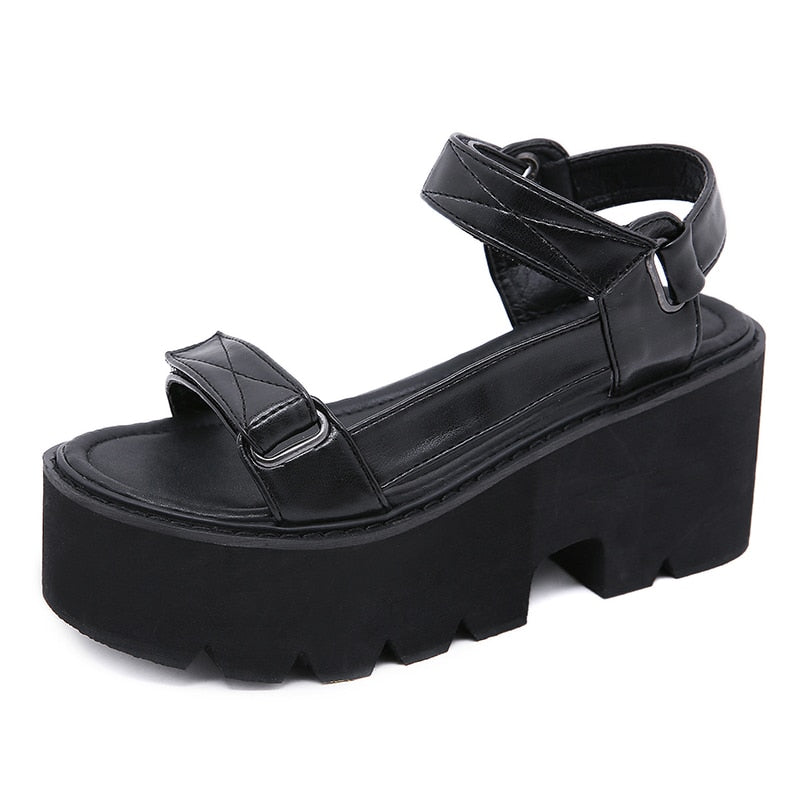 Gdgydh Block Heel Shoes Chunky Sandals Women Platform Heel Black Punk Sandals For Student 2021 New Arrival Comfortable Fast Ship