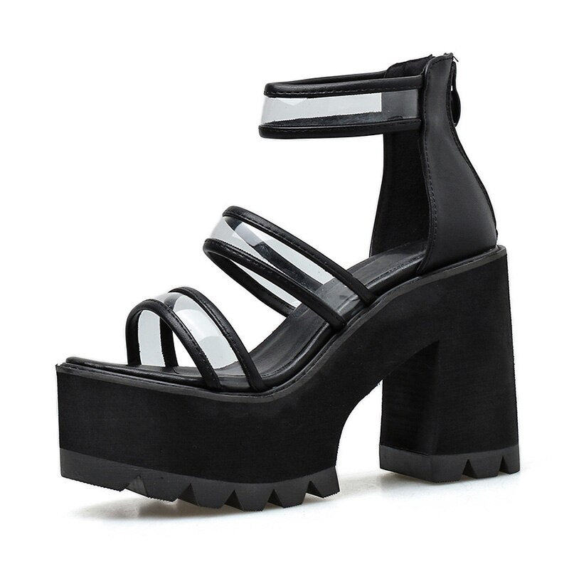 Gdgydh Drop Shipping 2021 New Summer PVC Sandals Platform Women Chunky Heel Outside Feet Shoes Summer Back Zipper High Quality