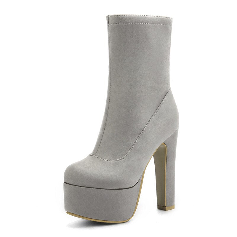 Gdgydh Fashion Solid Extreme High Platform Heels Boots Women Flock Boots With Zipper Big Size 48 Nightclub Female Footwear Cheap