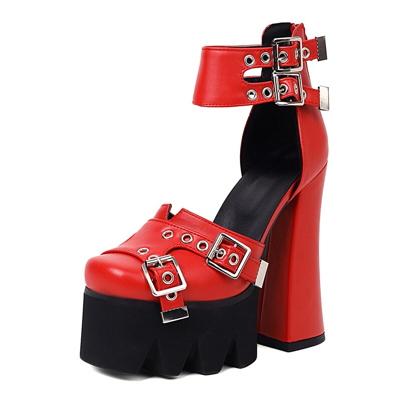 Gdgydh Harajuku Girls Sexy Gothic Punk Shoes Belt Buckle Plus Size 43 Spring Summer Sandal Shoes For Women Chunky Heels Comfort