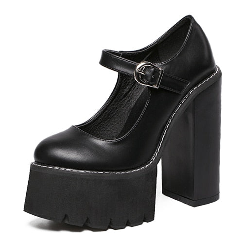 Gdgydh New Arrival Women Classic Pumps Shoes Spring Summer Black Leather Mary Jane Heels Fashion Buckle Platform Shoes Woman