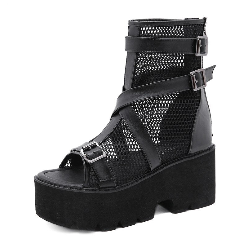Gdgydh Open Toe Platform Heel Women Boots Summer Shoes 2021 New Black Chunky Heel Boots Women Autumn Breathable High Quality
