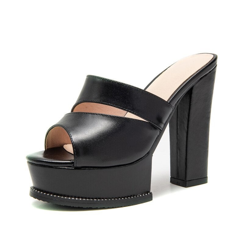 Gdgydh Open Toe Women Heels Sandals Genuine Leather Thick Heels Sexy Shoes For Women For Summer For Party High Quality Big Size