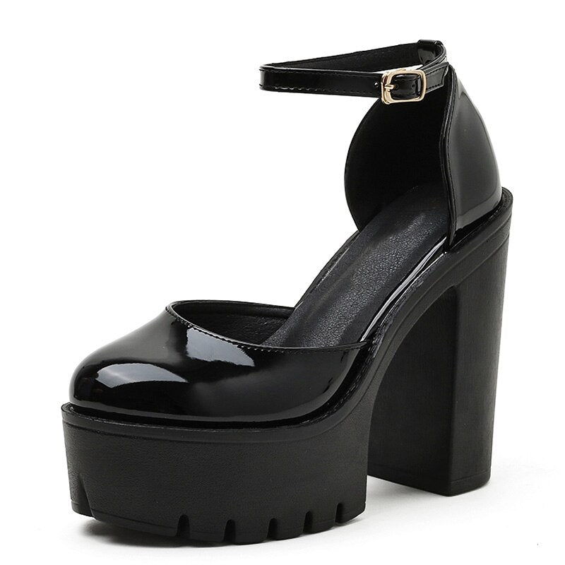 Gdgydh Patent Leather Platform Women Shoes High Heel Ankle Buckle Square Heel Women Pumps Party Model Footwear 2021 New Spring