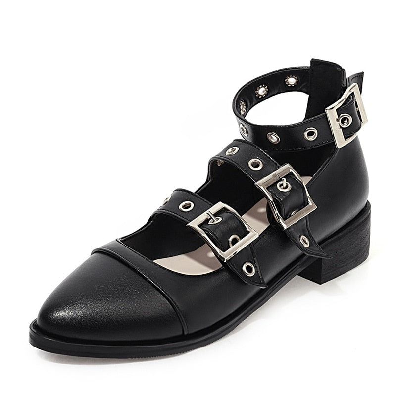Gdgydh Punk Style Black Leather Gothic Shoes Women Adult Mary Janes Large Size Square Heel Pumps Female Footwear Buckle Strap