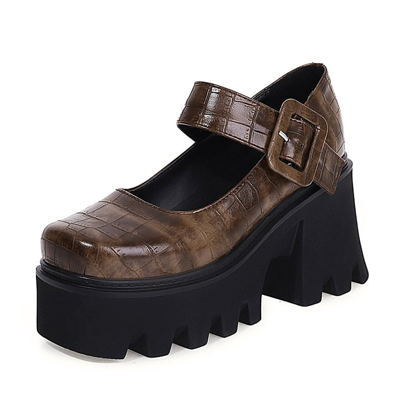 Gdgydh Sexy Buckle Platform High Heels Mary Jane Shoes For Women Black Red Leather Pu Harajuku Goth Shoes Pumps High Quality