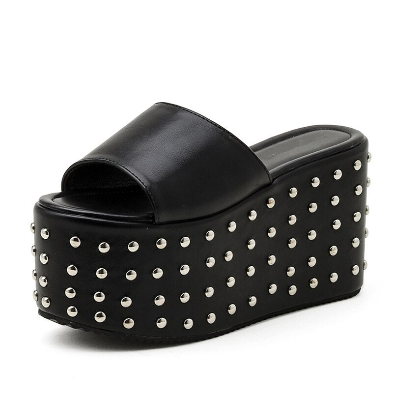 Gdgydh Sexy Rivet Brand Design Comfy Walking Sandals Women Gothic Style Extreme Platform Heel Outdoor Slippers Thick Bottom