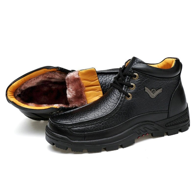 Genuine Leather Mens Shoes Fur Ankle Boots Business Warm Winter Shoes Snow Mens Boot Lace Up Work Shoes Male Plush WalkerPeak
