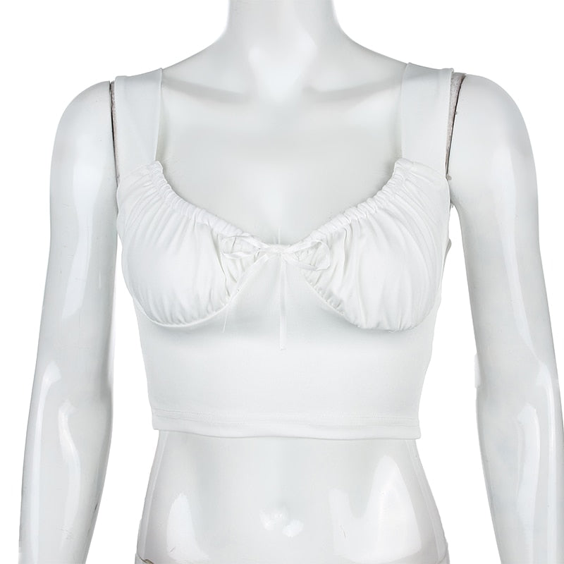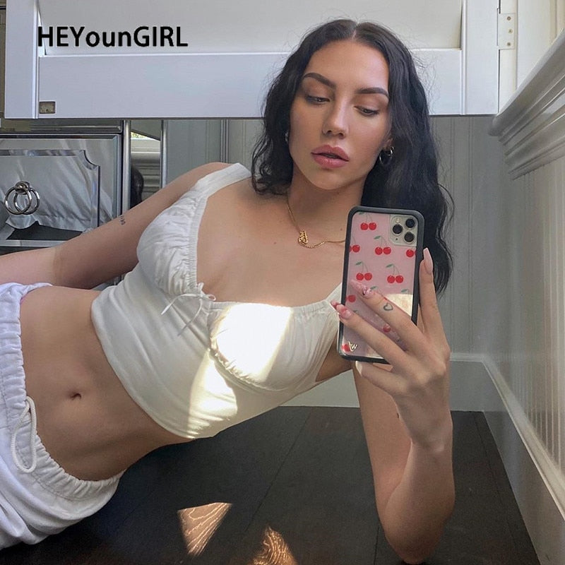 HEYounGIRL Summer Casual Sleeveless Tank Tops Women Milkmaid White Ruched Crop Top Tees Fashion Basic Croptop Streetwear 2021