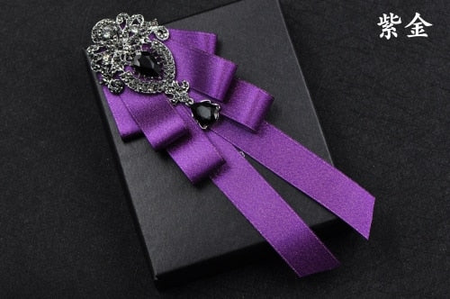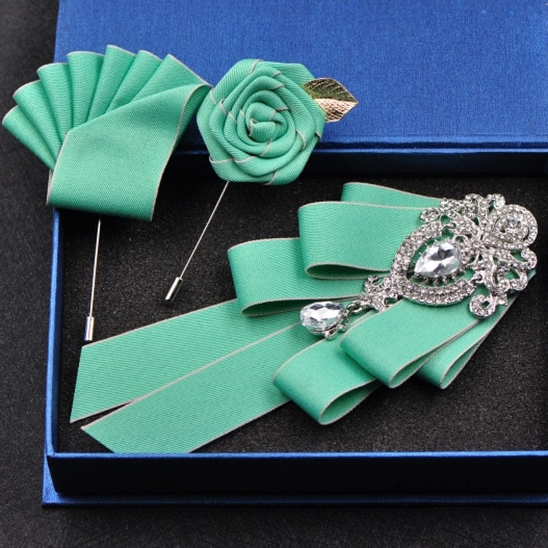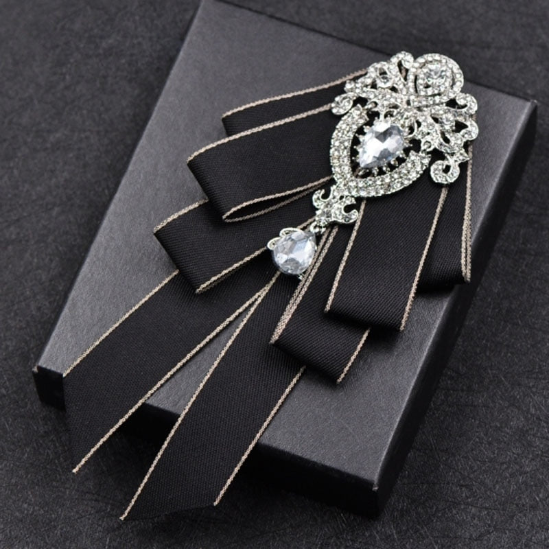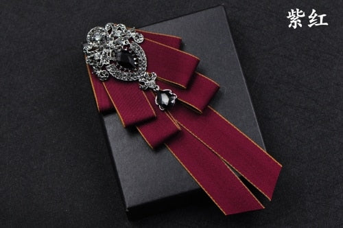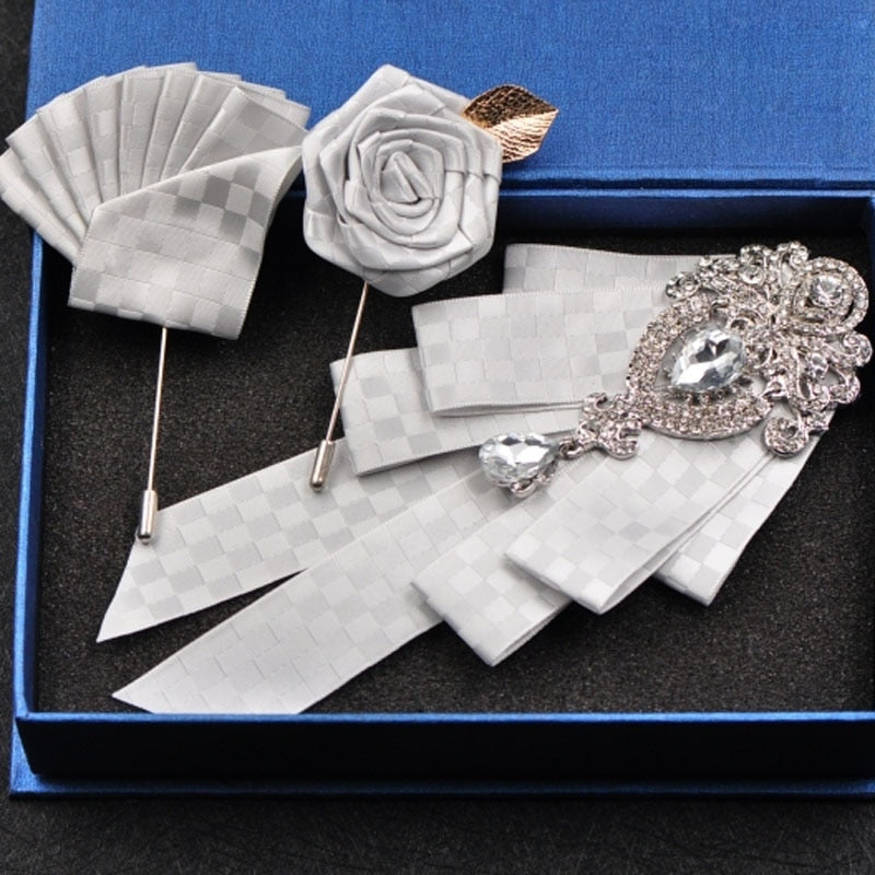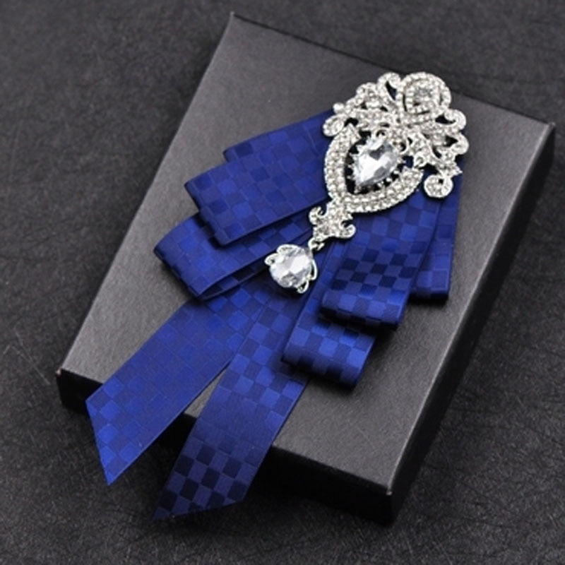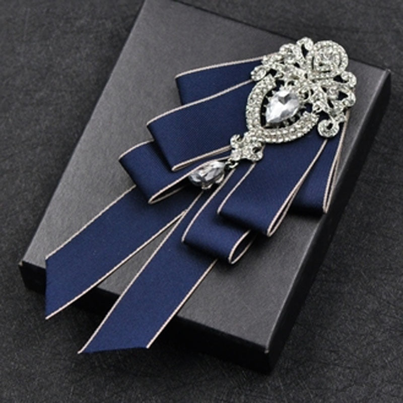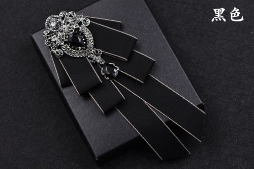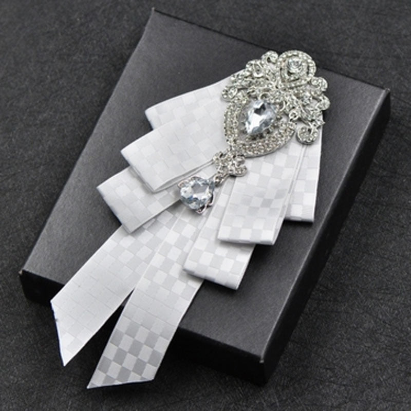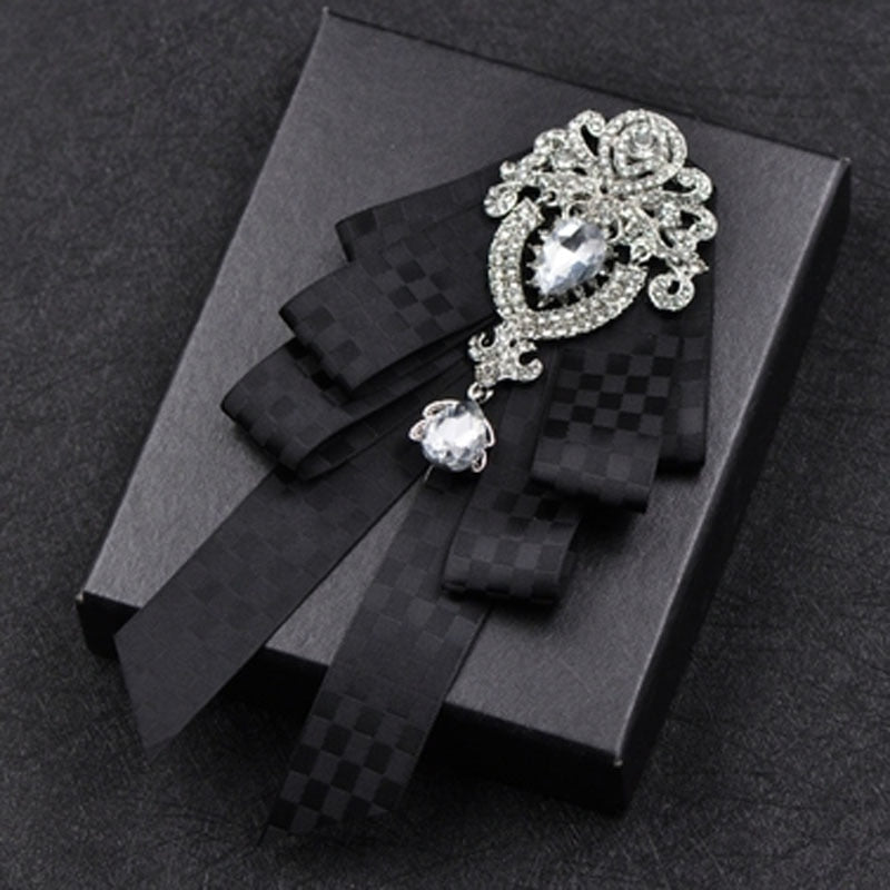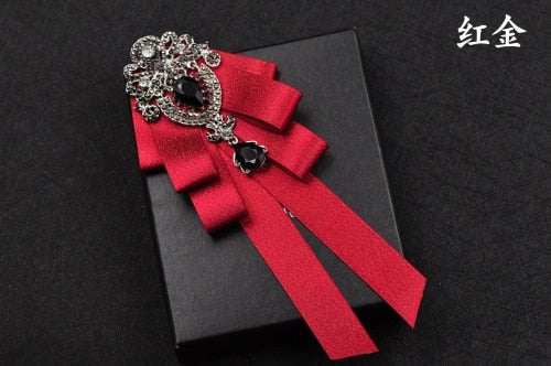 High-quality Fashion Handmade Red Diamond Bow Tie Wedding Collar Bowtie Brooch Pocket Towel Square Set Gifts for Men Accessories