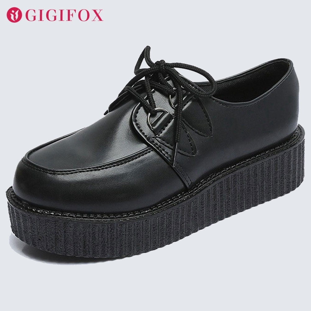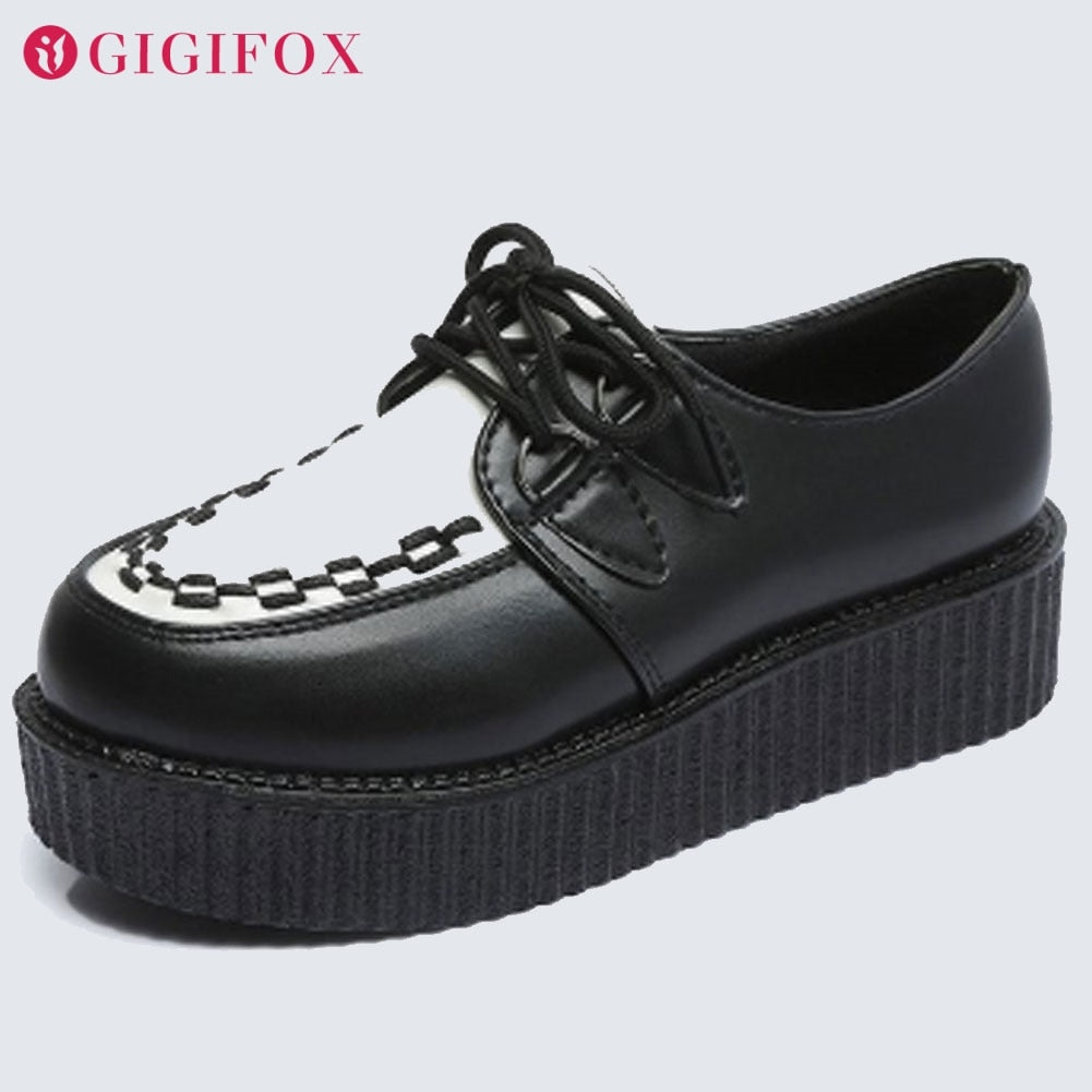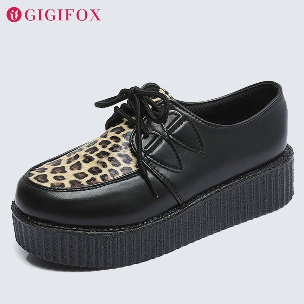 In Stock Female Flat Platform Flats Black White Leopard Lace Up Trendy 2021 Spring Summer Woman Casual Shoes Creepers