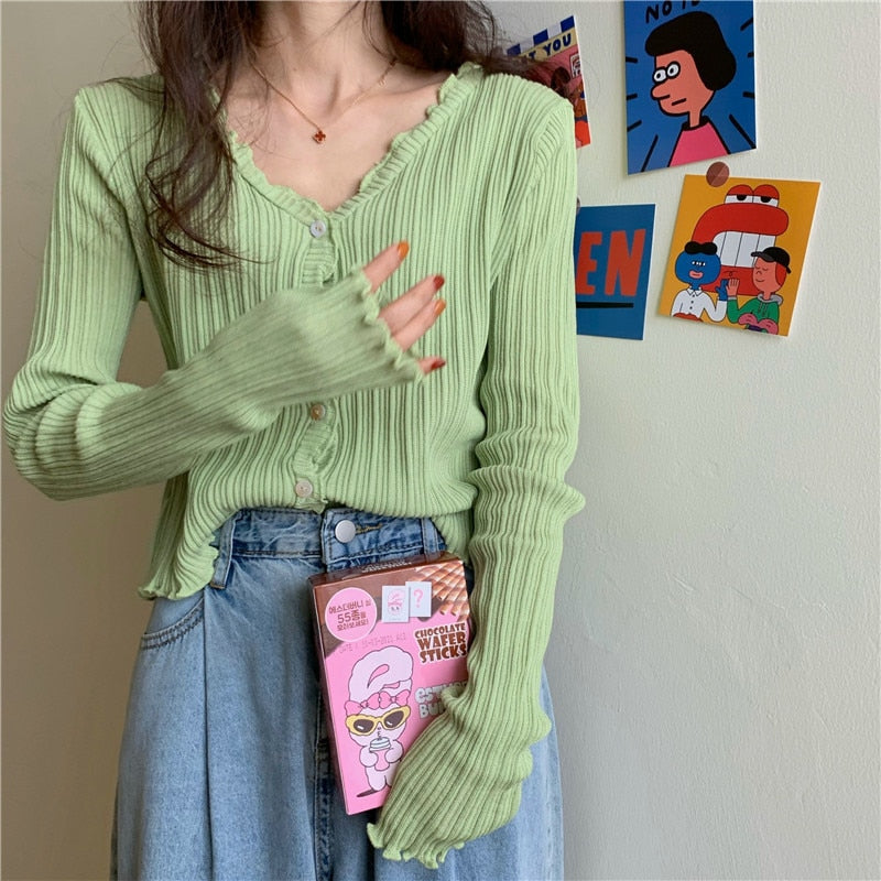 Korean Short Sweater Women V-Neck Knitted Cardigan 2021 Fashion Single Breasted Women Elasticity Cropped Cardigan Sweater Female