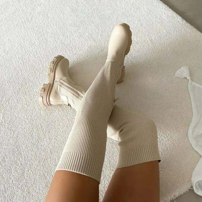 Ladies Knee High Boots Womens Thick Heel Slim Winter Plus Velvet Stretch Boots High Heel Large Size Suede Boots Plus Size