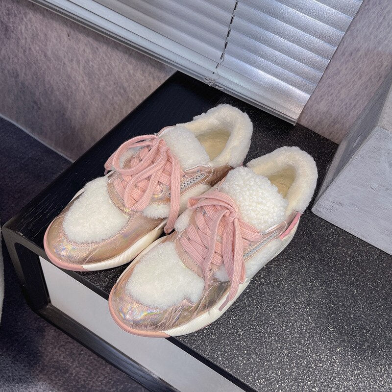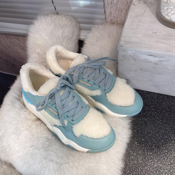 Lambswool Keep Warm Female Snow Boots 2021 Winter New Wool Inside Thicken Fur Shoes Women's Platform Sneaker Chunky Fur Shoes