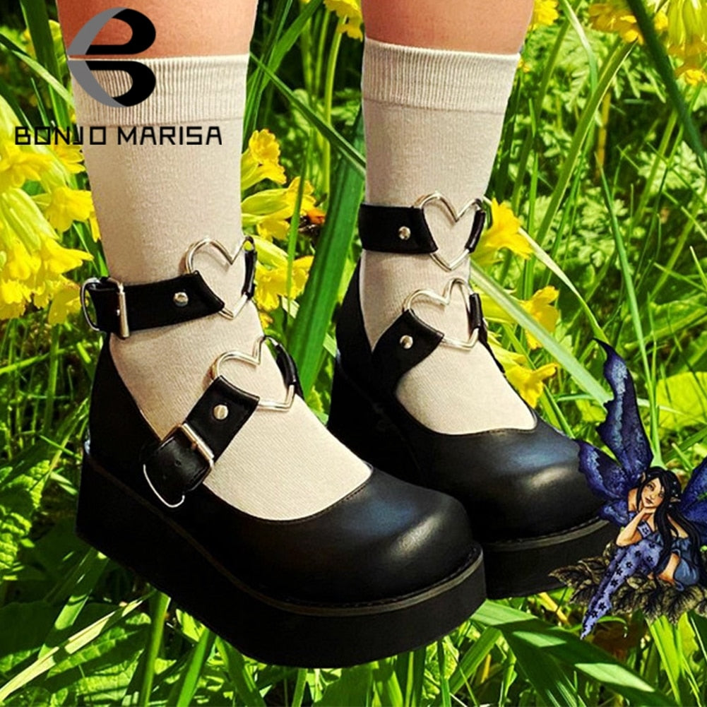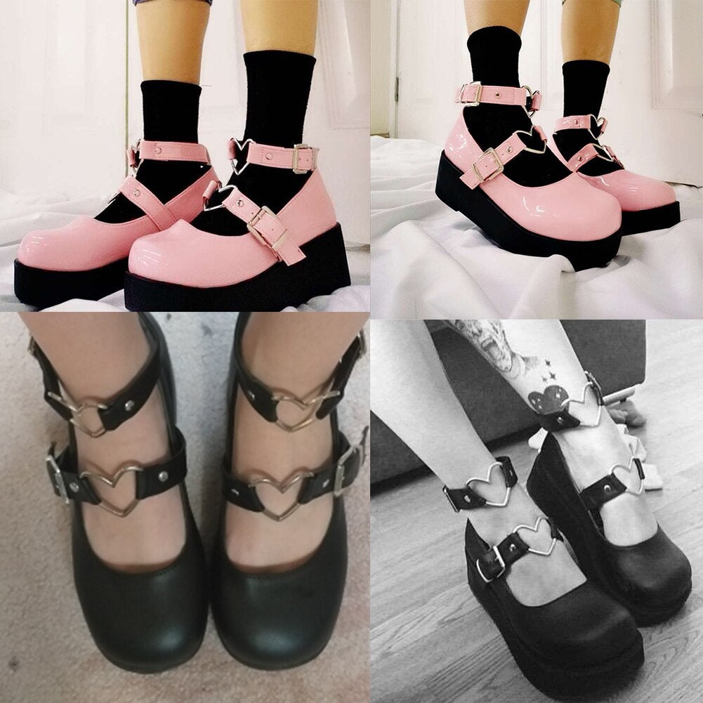 Large Size 43 Female Lolita Marry Jane Pumps Heart Buckle Platform Cosplay Brand Women Pumps Sweet Punk Cool Shoes Woman