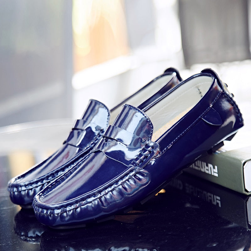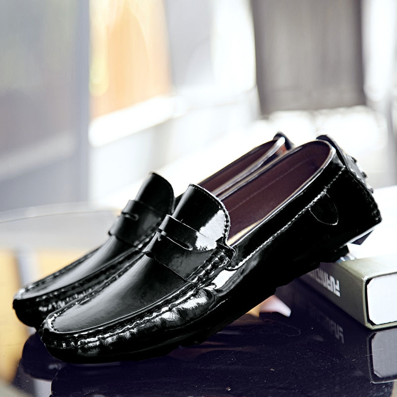 men penny loafers slip on moccasins burgundy patent leather non-slip driving shoes men outdoor leather loafers black white