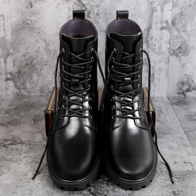 Men's Moto Boots Outdoor Mid-calf Army Boots Men's Leather Military Desert Tactical Boot Shoe Black Combat Boots Walker Peak