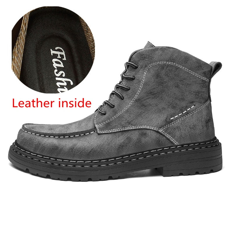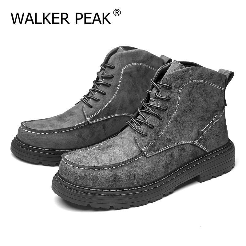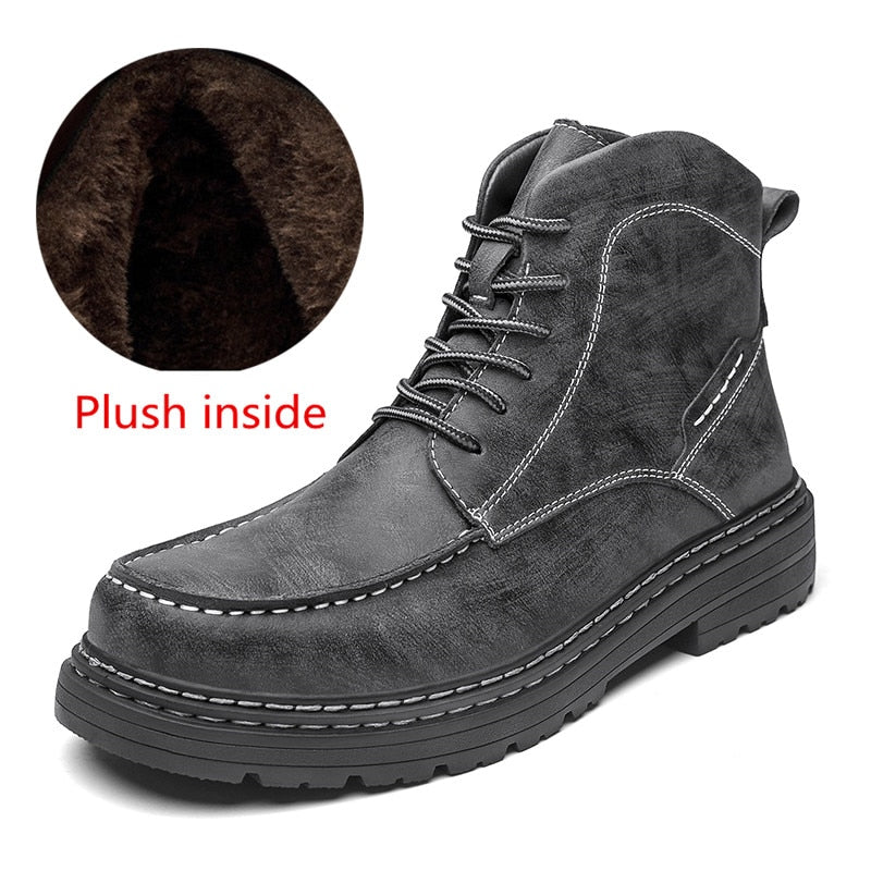 Motorcycle Winter Mens Shoes Thick Plush Warm Men Snow Boots Waterproof Male Ankle Boots Outdoor Non-slip Hiking Boots Work