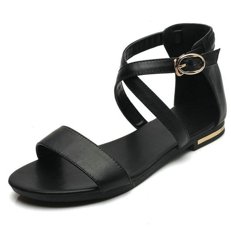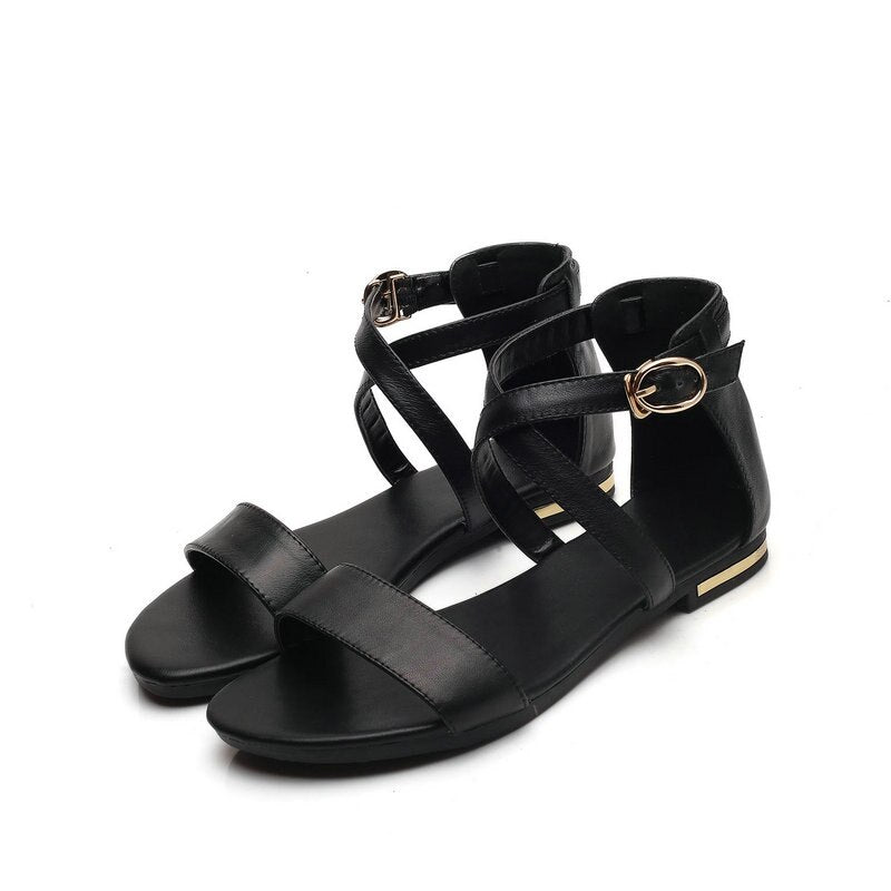 NEMAONE 2018 Genuine Leather Women Sandals Summer Sweet Women Flats Heel Sandals Ladies Shoes Black big size 12 13 14 15