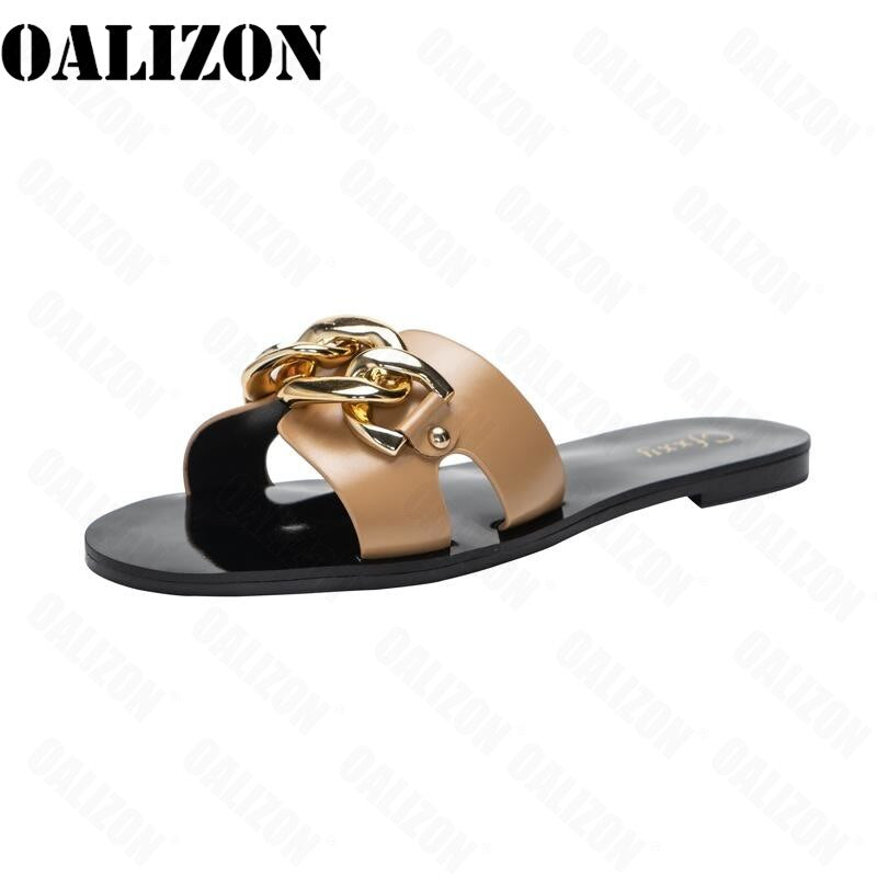 New 2021 Summer Lady Women Fashion Chain Open Toe Flat Sandal Slippers Shoes Women Female Flat Beach Slides Slippers Shoes Mujer