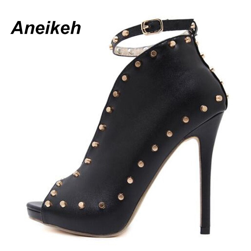 NEW Autumn Women Shoes 2021 Peep Toe Pumps High Heels Women's Shoes Ankle Boots Rivets Buckle Motorcycle Women's Pumps Aneikeh