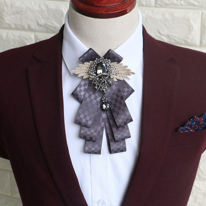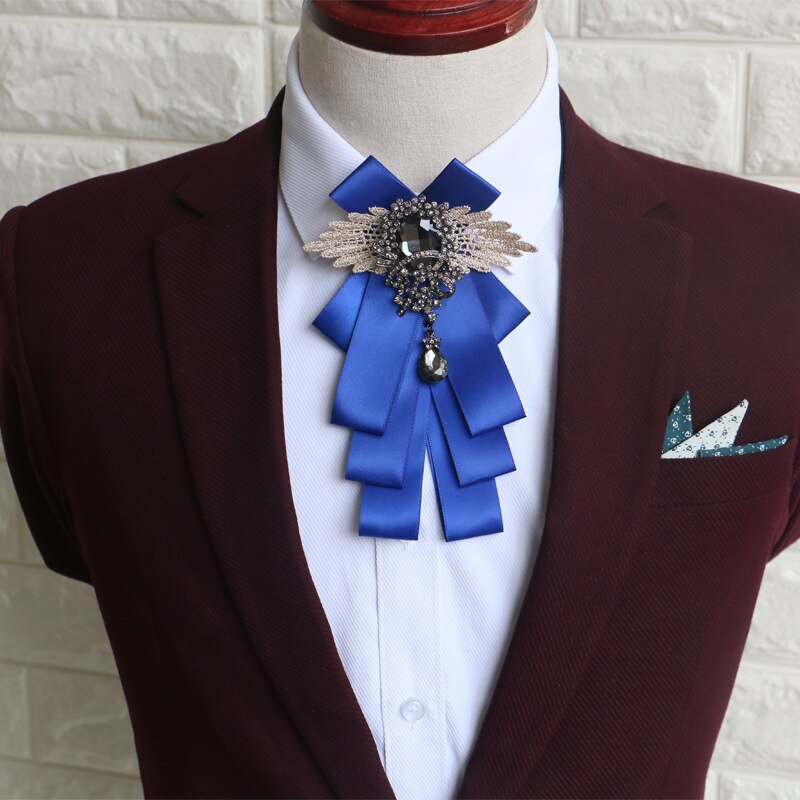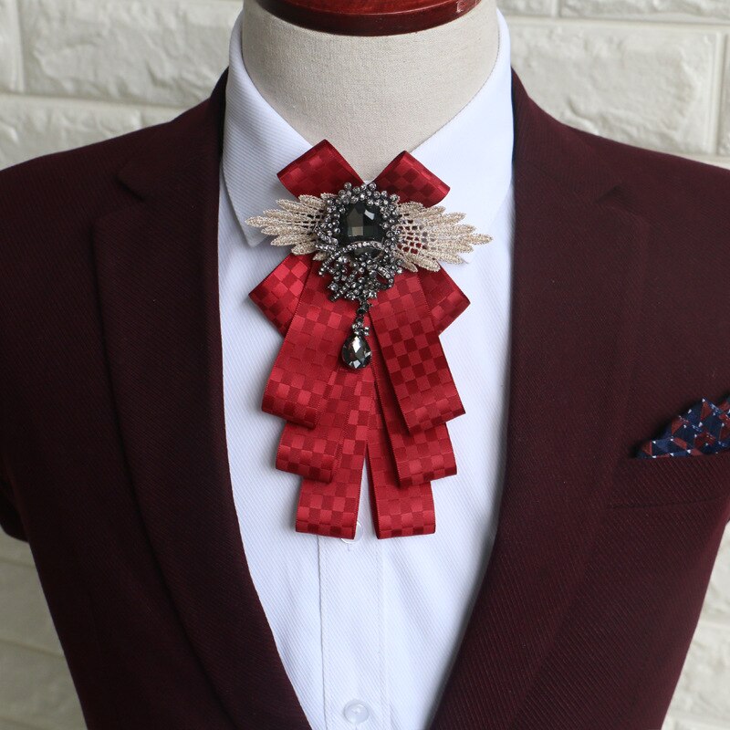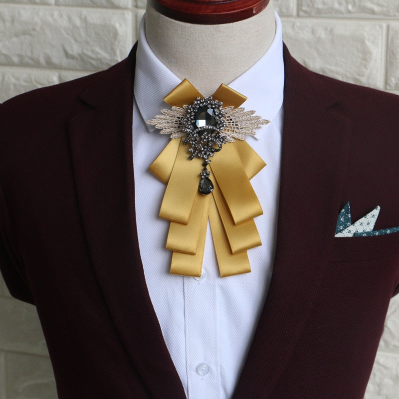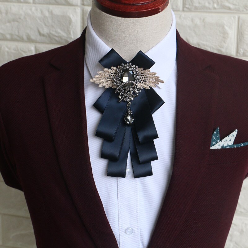 New Bow Tie Vintage Rhinestone Handmade Ribbon Brooch Bowtie Elegant Jewelry Collar Pin Cravat Wedding Accessories Pocket Square