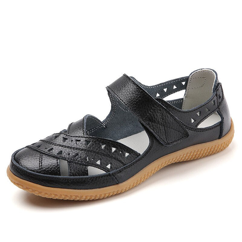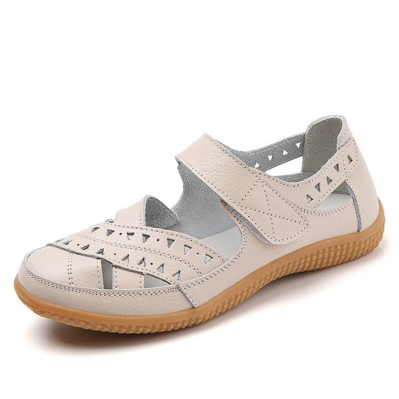 New Genuine Leather Women's Summer Sandals Cut-Outs Woman Flats Shoes Breathable Female Beach Loafers Soft Mother Shoe