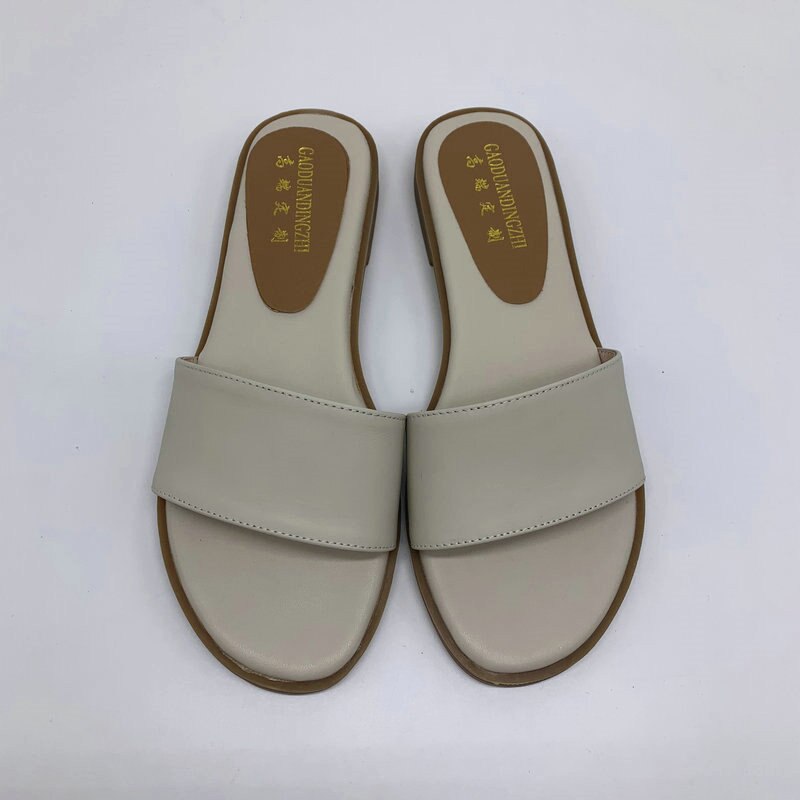 New women slippers 100% Genuine leather 1.5cm flat slipper open toe women sandals  black  yellow ladies casual shoes woman
