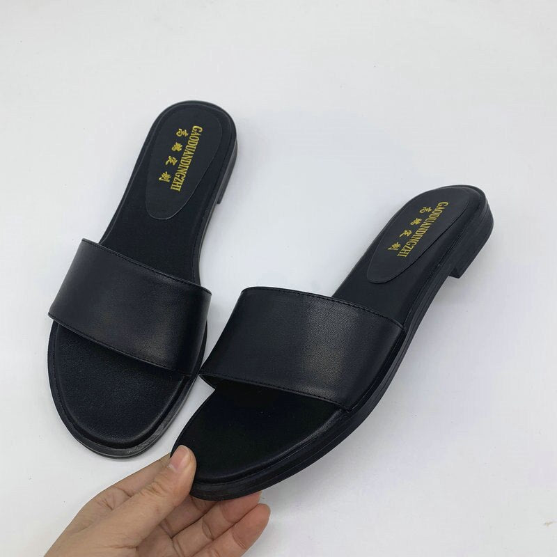 New women slippers 100% Genuine leather 1.5cm flat slipper open toe women sandals black yellow ladies casual shoes woman