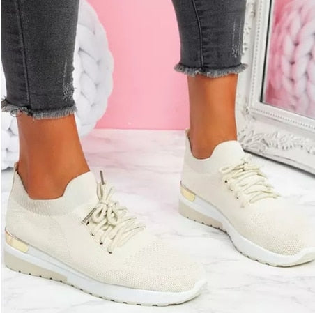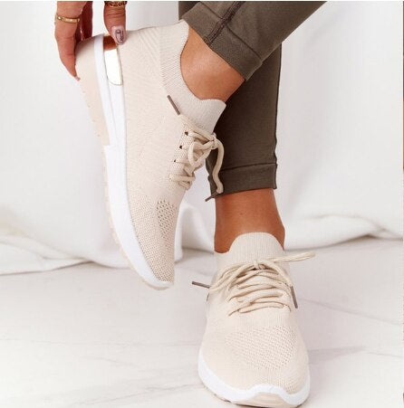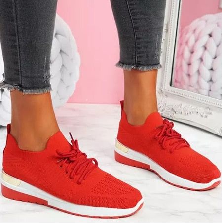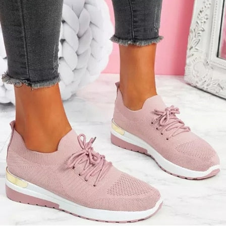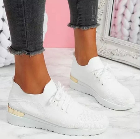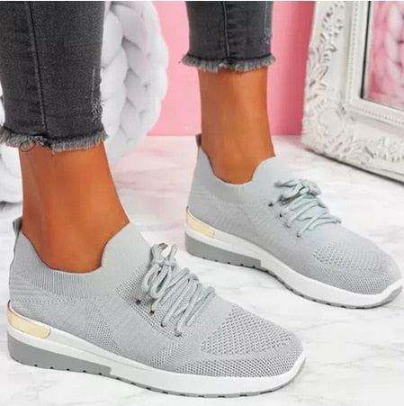 New Women Sneakers Ladies Solid Color Vulcanized Shoes Lace-Up Round Toe Wedge Ladies Shoes Outdoor Casual Comfy Female Footwear