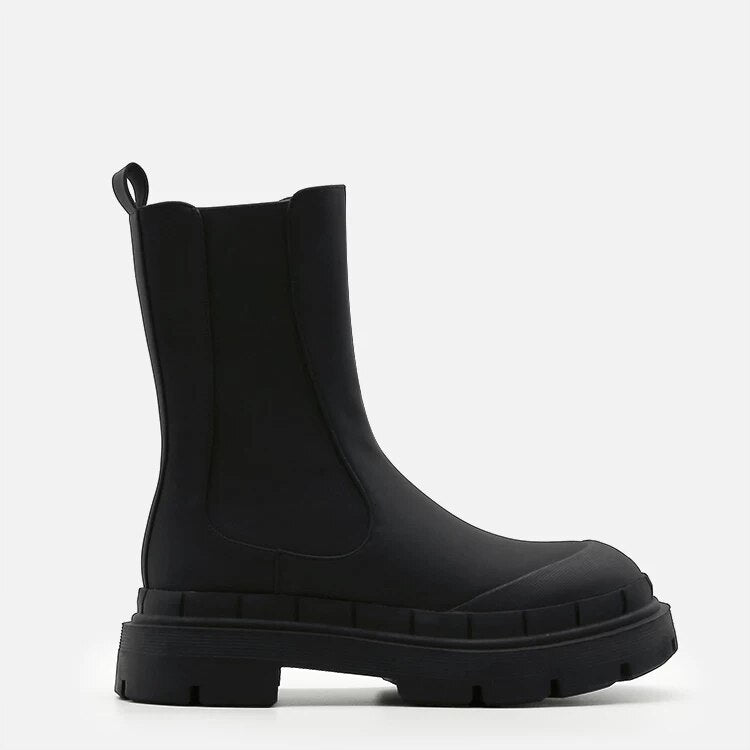 New Women's Ankle Boots Autumn Winter Chelsea Boots Pu Leather Zipper Chunky Heels Platform Fashion Ladies Shoes Long Boots