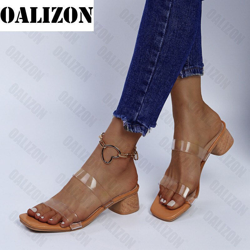New Women's Summer Gladiator Sandals Flip Flops Mid Square Heels Pumps Slippers Shoes Women Peep Toe Slides Slippers Shoes Femme