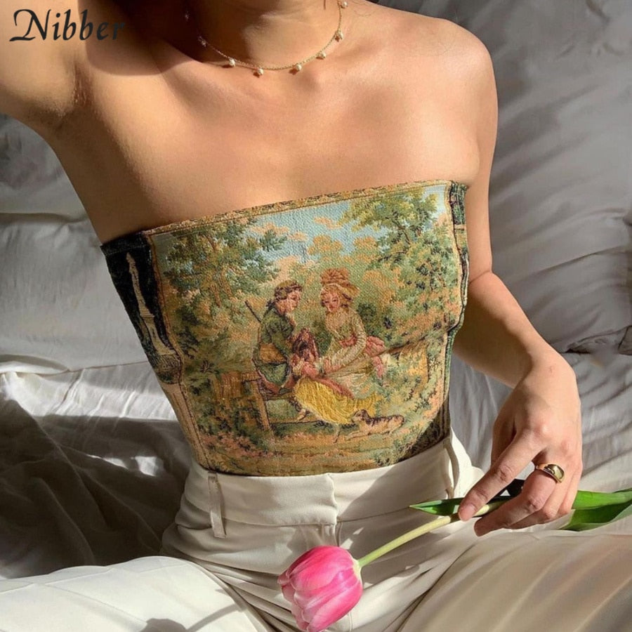 Nibber Fairy Print Backless Women Corset Crop Top Summer Vintage Y2K Aesthetic Tank Tops Party Bandage Strapless Streetwear Vest