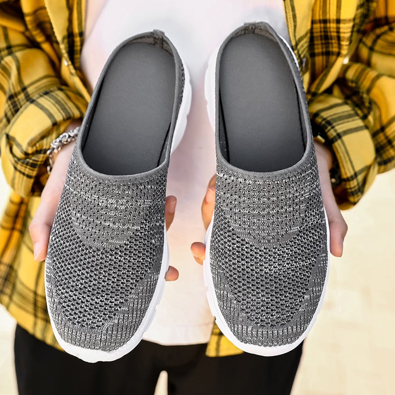 Nine o'clock All-match Men Casual Mules Super Light Male Flat Shoes Fashion Breathable Couple Half Slippers Soft Bottom Big Size