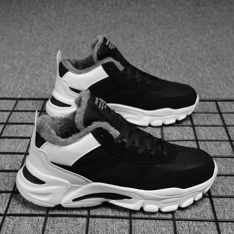 Nine o'clock Stylish Winter Men Plush Shoes Outdoor Anti-skid Male Casual Footwear Warm Lined Lace-up Shoes 2021 New All-match
